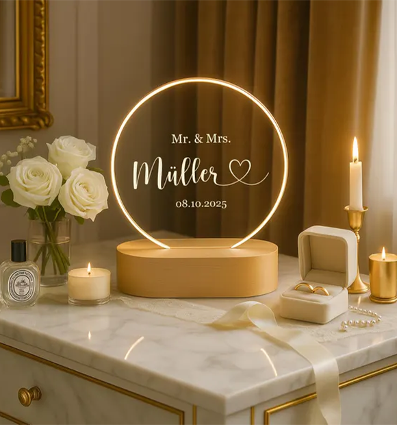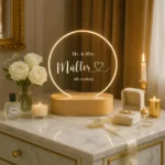 Lampe de mariage personnalisée en acrylique « M. et Mme » – avec nom de famille et date